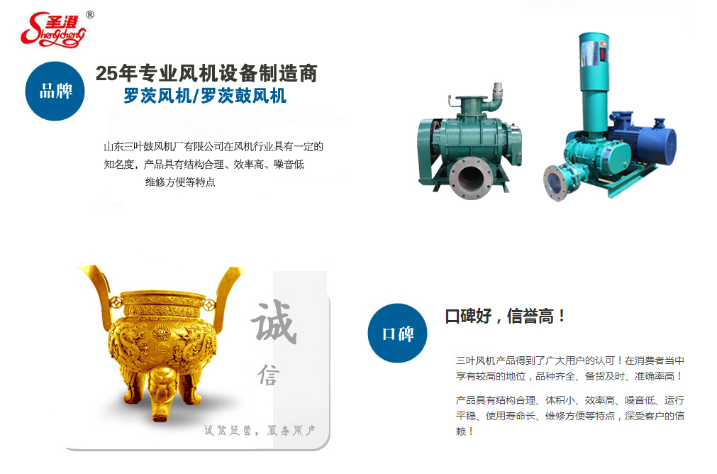 山東三葉鼓風機廠有限公司(原章丘市三葉鼓風機廠)創建于1990年,是專業生產羅茨鼓風機、羅茨真空泵、增壓泵以及回轉式風機系列產品的廠家,南靠309國道、膠濟鐵路線,北接濟青高速公路,地理位置優(yōu)越,交通便利。本公司本著“質量第一、誠信為本”的指導方針,經過十多年的發(fā)展,以過硬的產品質量,及時完善的售后服務已在市場中占領一席之地。本公司生產的風機噪音低、高效節(jié)能、外型美觀;風機進、排氣口采用螺旋形狀,使進排風過程按螺旋線的方向循序切入。產品具有結構合理、體積小、效率高、噪音低、運轉平穩(wěn)、使用壽命長、維修方便等特點。歡迎各界朋友親臨公司洽談業務,指導工作,攜手并進共創美好未來!